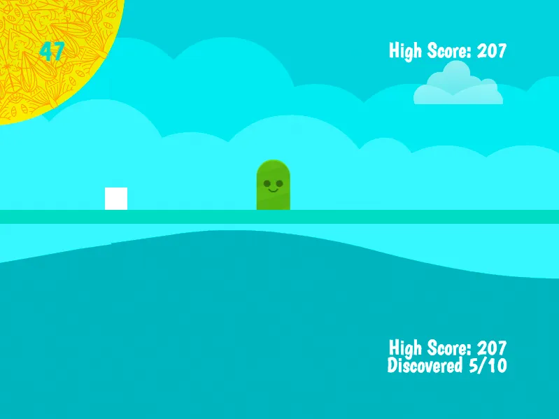 Having a single way to interact with the game gave a nice constraint - powerups should either provide an alternative way to avoid the obstacles (for instance, by destroying them), or should not affect the way the player can avoid them (ie don't break the jump mechanic!).