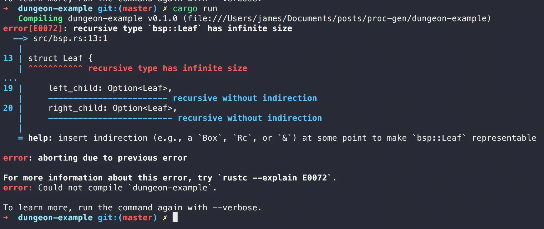 - Use prebuilt rooms with Rust macros for more interesting dungeons