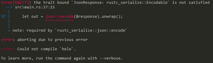 If you try to run this, you'll get an error complaining that our struct doesn't satisfy the Encodable trait: